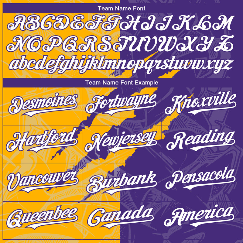 Custom Graffiti Pattern White Purple-Gold 3D Scratch Authentic Baseball Jersey