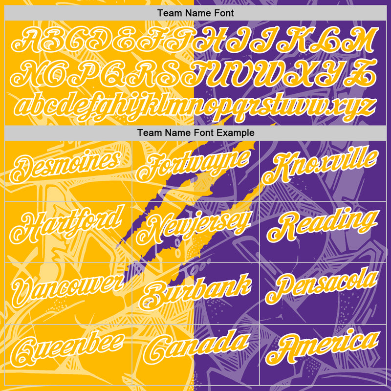 Custom Graffiti Pattern Gold Purple-White 3D Scratch Performance Polo Shirt
