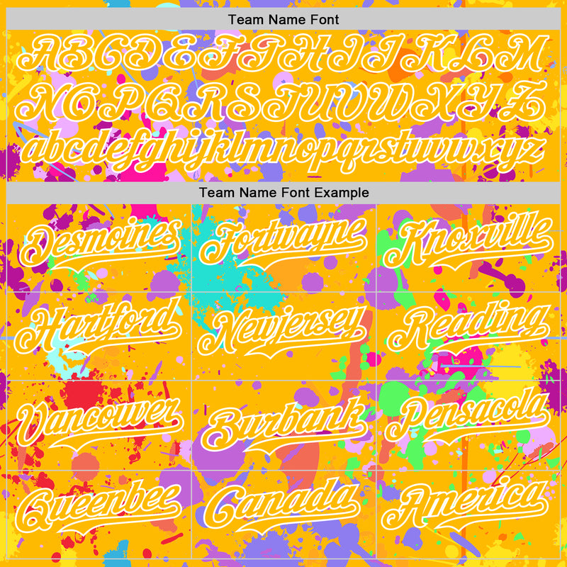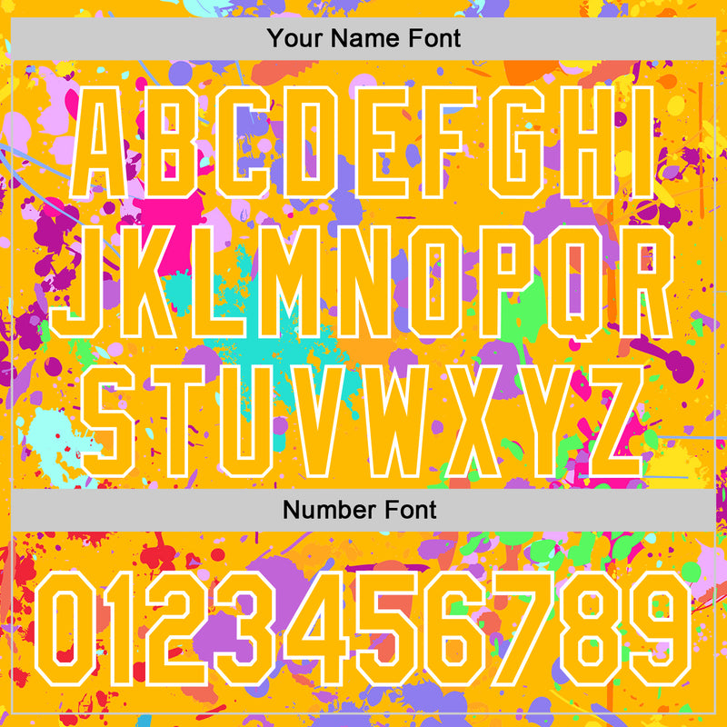 Custom Graffiti Pattern Gold-White Splash Bomber Full-Snap Varsity Letterman Hoodie Jacket