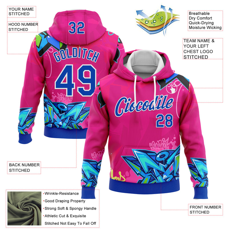 Custom Stitched Graffiti Pattern Thunder Blue-White 3D Hiphop Abstract Urban Street Art Sports Pullover Sweatshirt Hoodie