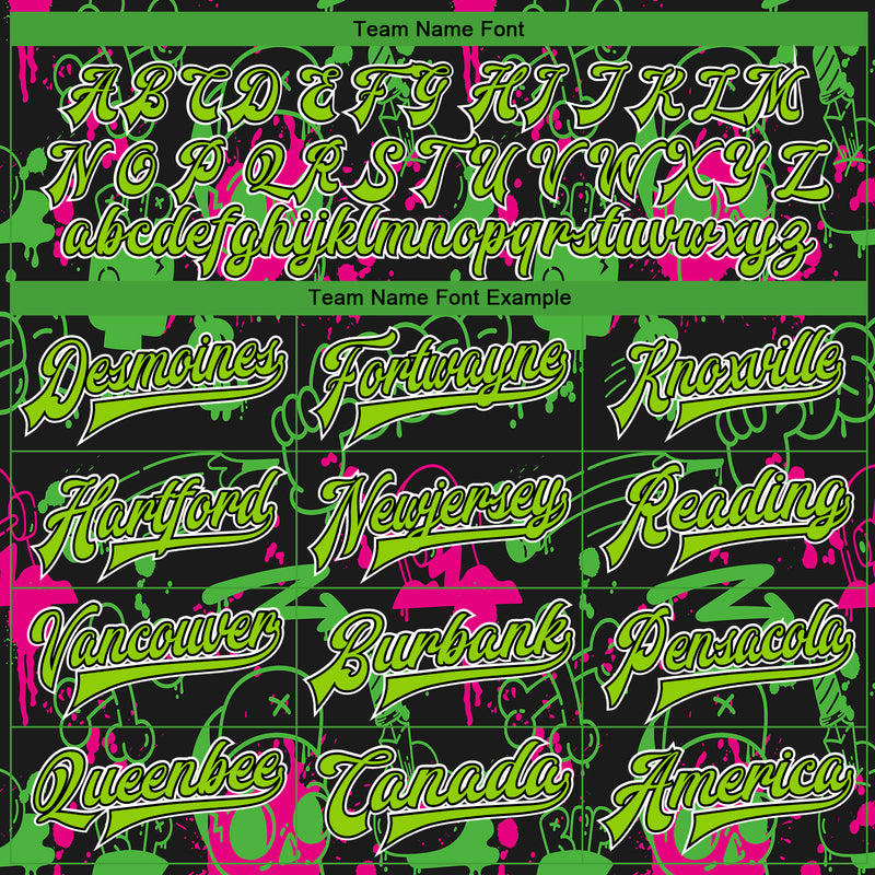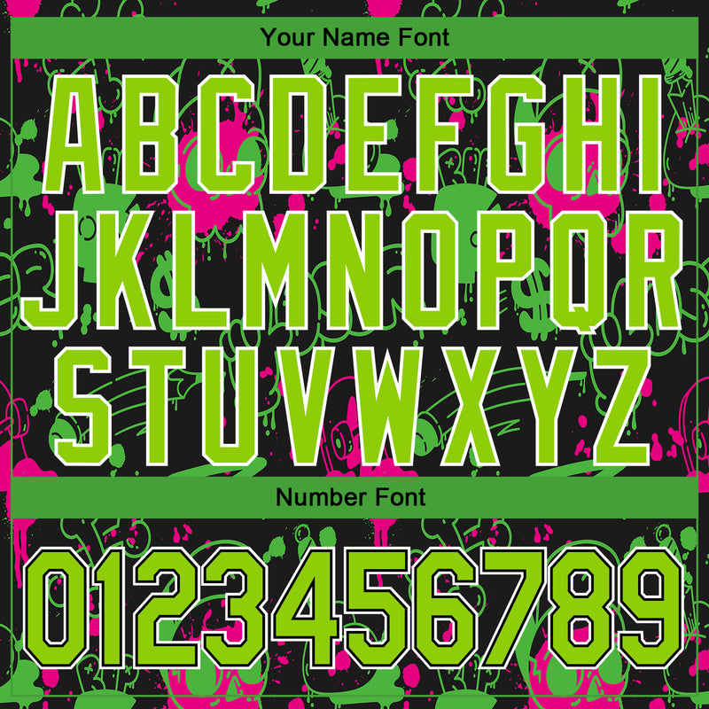 Custom Graffiti Pattern Neon Green-Black Abstract Grunge Art 3D Bomber Full-Snap Varsity Letterman Jacket