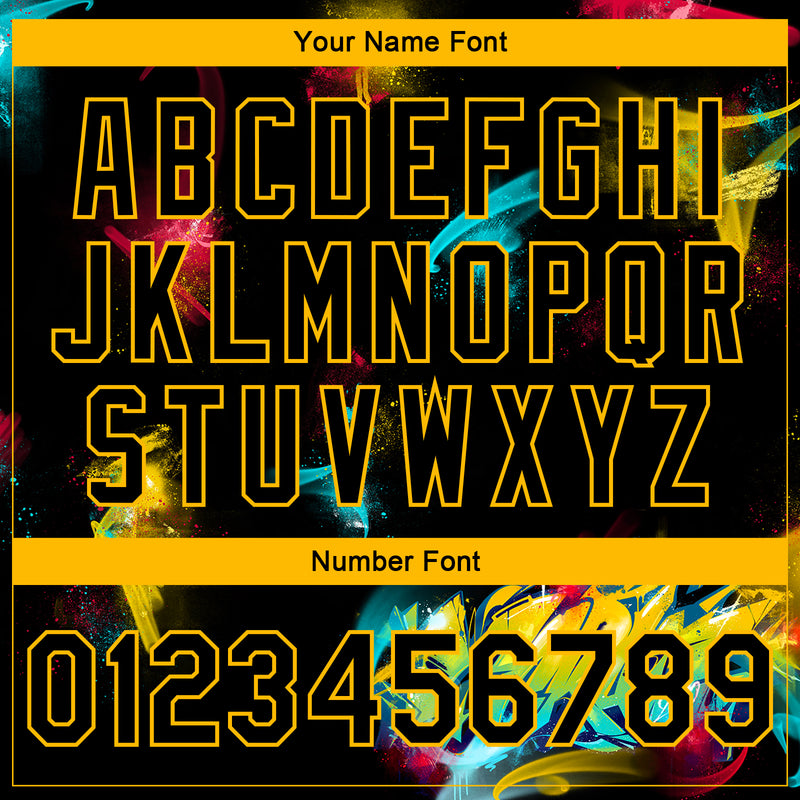 Custom Graffiti Pattern Black-Gold 3D Bomber Full-Snap Varsity Letterman Jacket