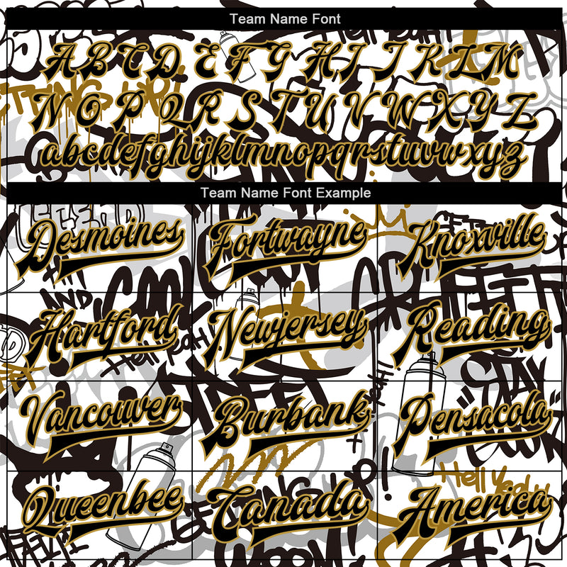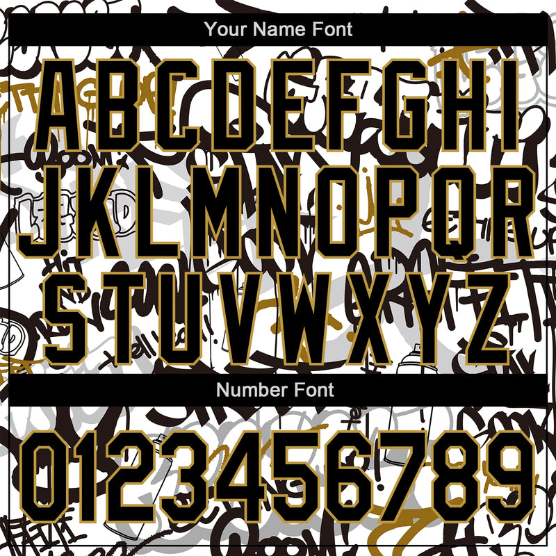 Custom Graffiti Pattern Black-Old Gold Grunge Urban Street Art 3D Bomber Full-Snap Varsity Letterman Jacket