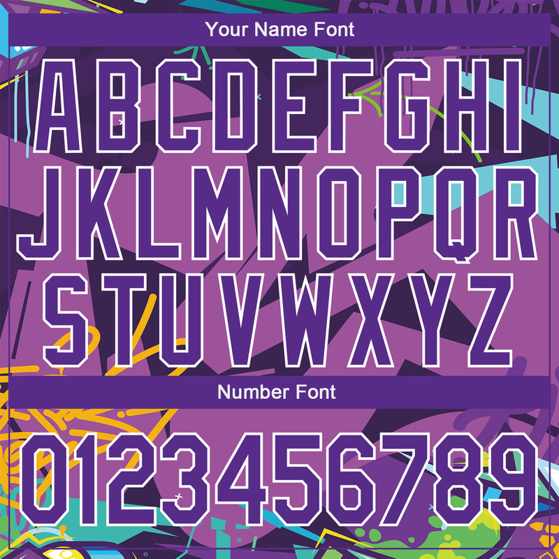 Custom Graffiti Pattern Purple-White Trendy Abstract Urban Street Art 3D Bomber Full-Snap Varsity Letterman Jacket