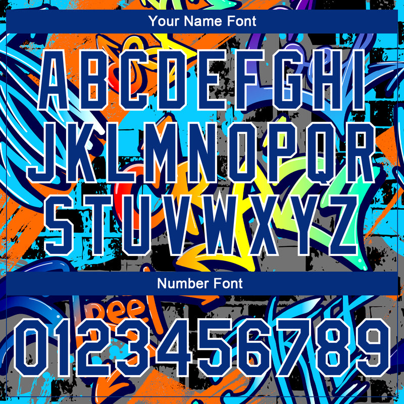 Custom Graffiti Pattern Royal-White Geometric 3D Bomber Full-Snap Varsity Letterman Jacket