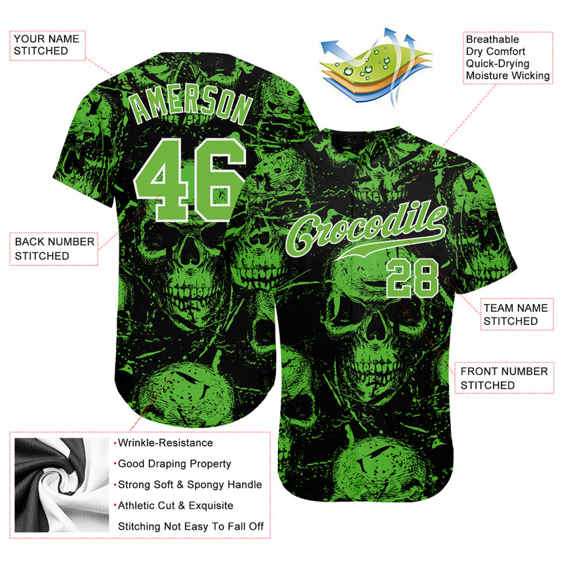 Custom 3D Pattern Halloween Skulls Authentic Baseball Jersey