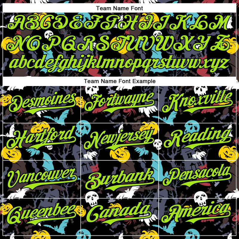 Custom Black Neon Green 3D Halloween Skull Pumpkin Doodle Party Costume Ideas Authentic Baseball Jersey