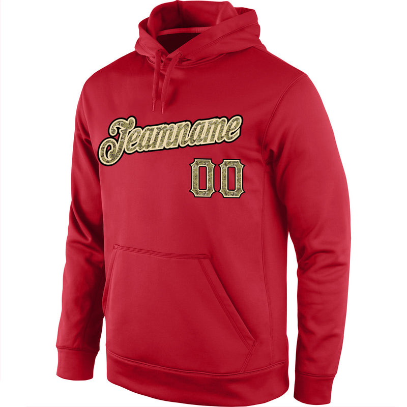 Custom Stitched Red Camo-Cream Sports Pullover Sweatshirt Hoodie