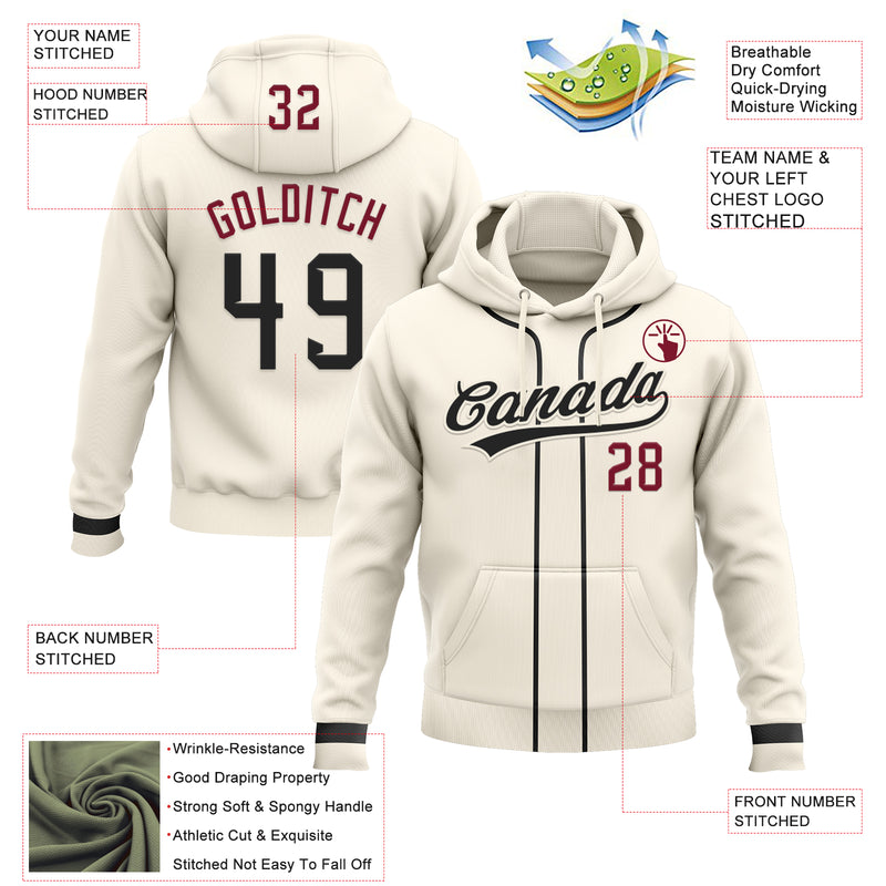 Custom Stitched Cream Black-Crimson Baseball Pullover Sweatshirt Hoodie