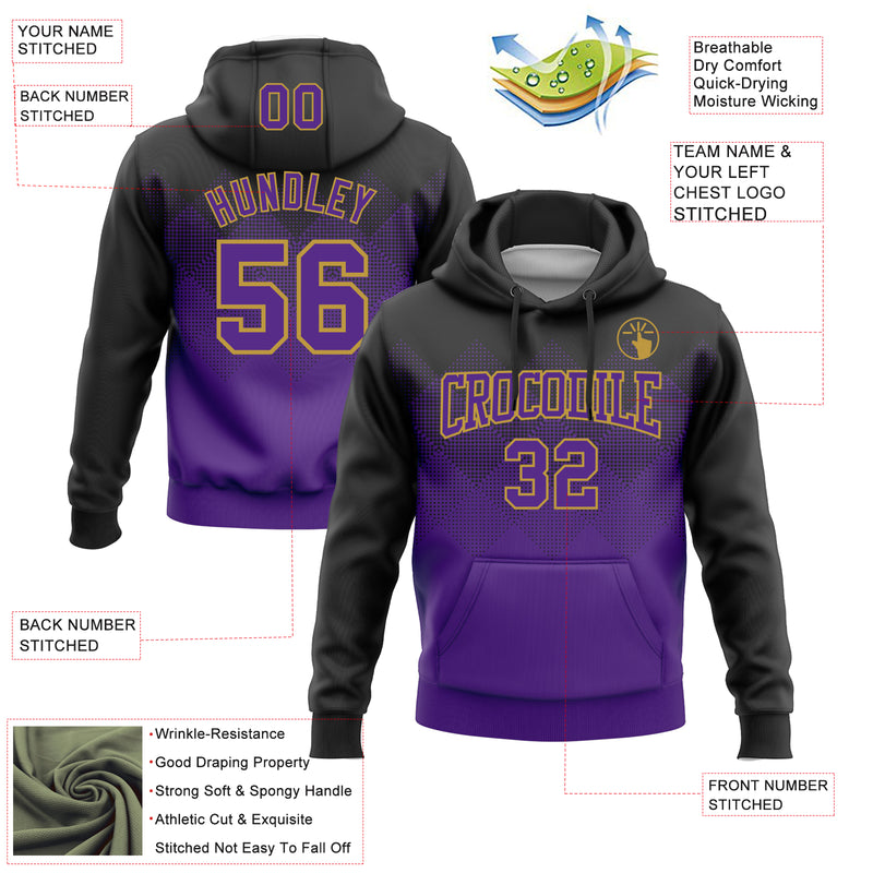 Custom Stitched Black Purple-Old Gold 3D Pattern Design Gradient Square Shape Sports Pullover Sweatshirt Hoodie