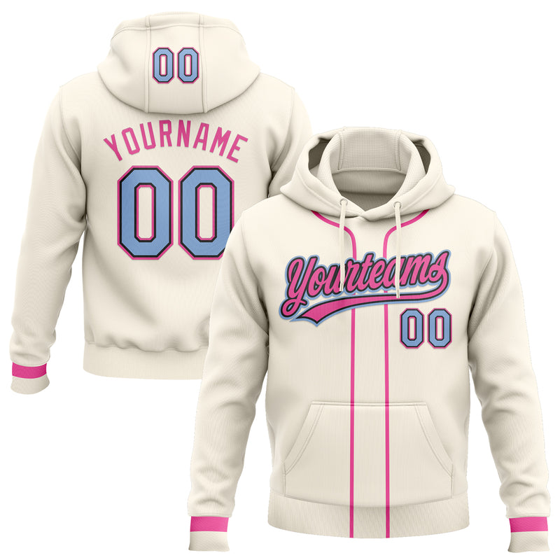 Custom Stitched Cream Light Blue Pink-Black Baseball Pullover Sweatshirt Hoodie
