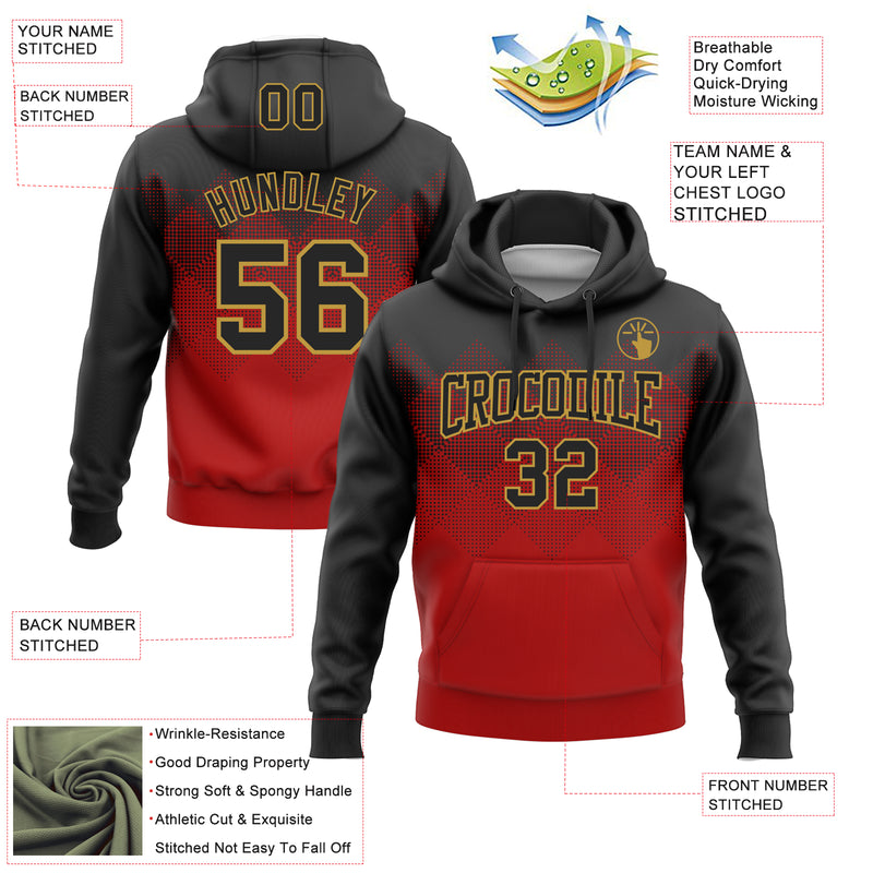 Custom Stitched Black Red-Old Gold 3D Pattern Design Gradient Square Shape Sports Pullover Sweatshirt Hoodie