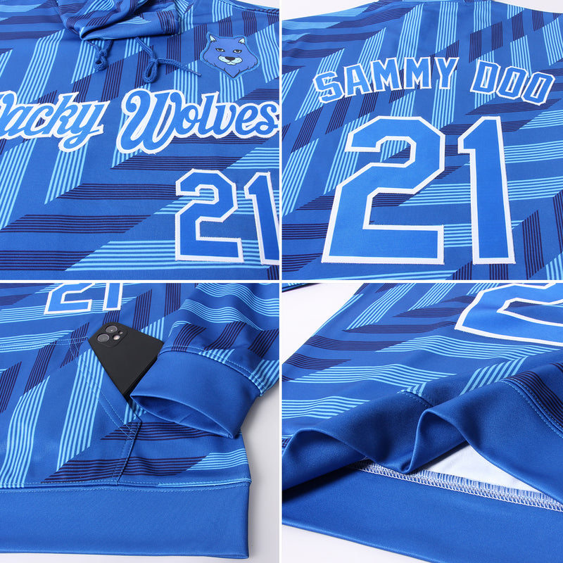 Custom Stitched Powder Blue Royal-White 3D Pattern Design Sports Pullover Sweatshirt Hoodie