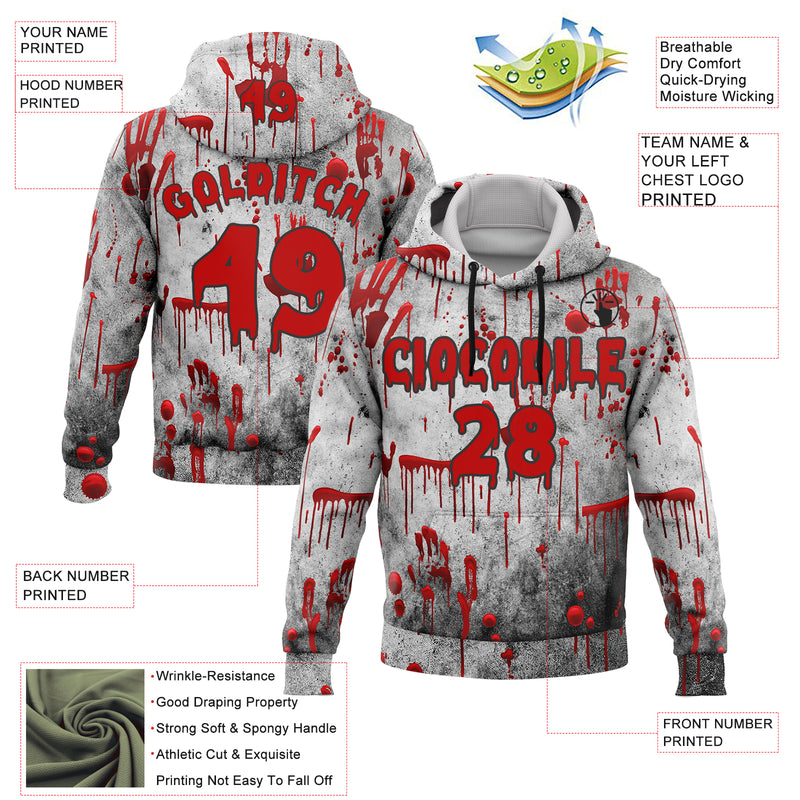 Custom Gray Red-Black 3D Halloween Creepy Blood Horror Sports Pullover Sweatshirt Hoodie