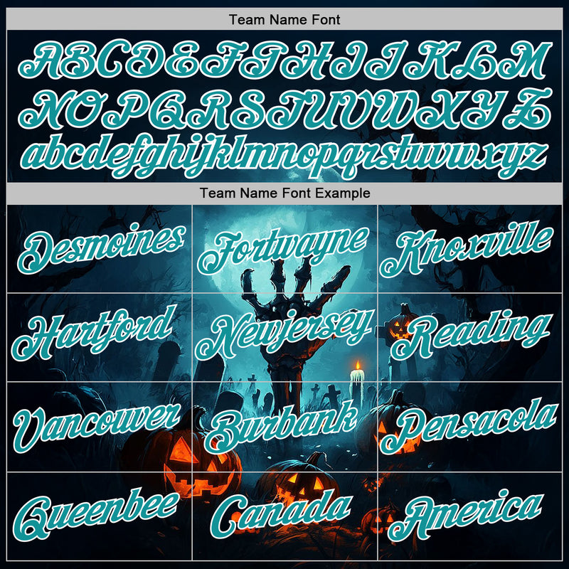 Custom Blue Teal-White 3D Halloween Zombies Spooky Sports Pullover Sweatshirt Hoodie