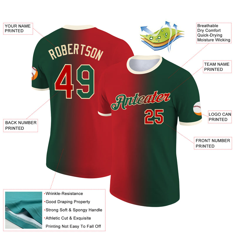 Custom Green Red-Cream Gradient Fashion Performance T-Shirt