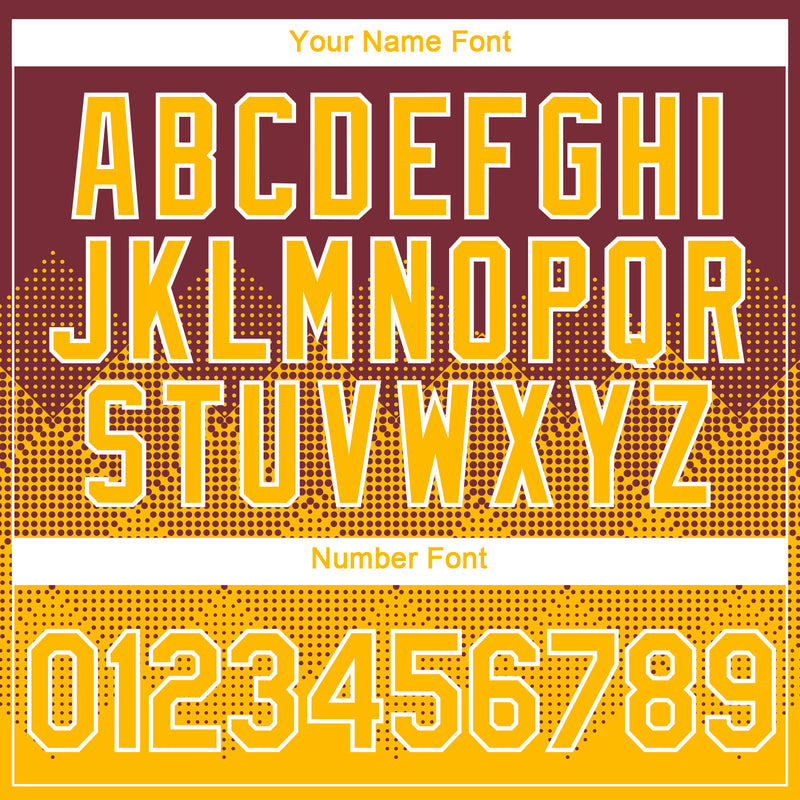 Custom Burgundy Gold-White 3D Pattern Design Gradient Square Shapes Performance T-Shirt