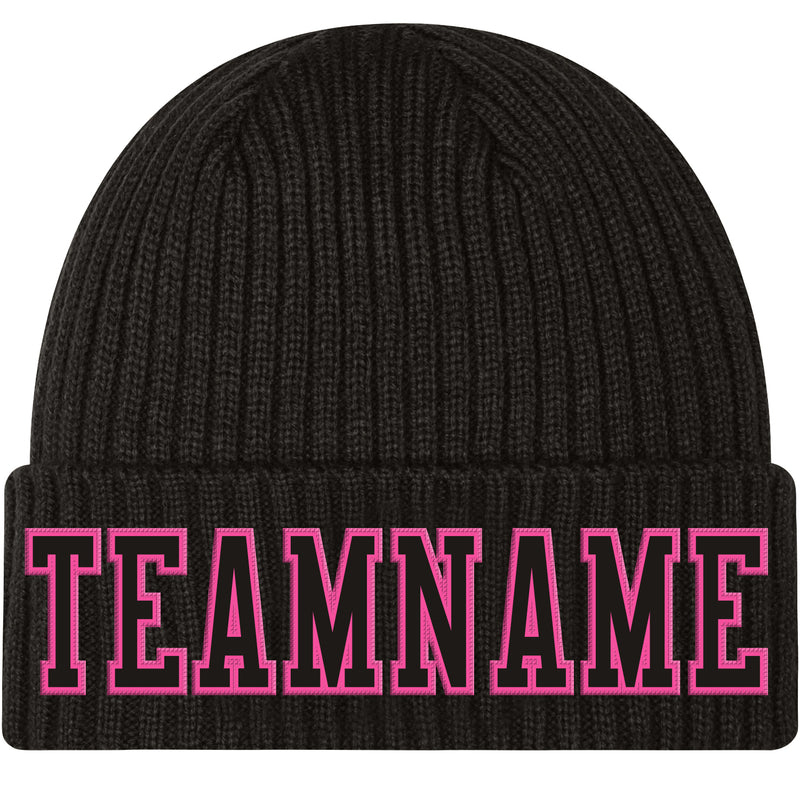 Custom Black Black-Pink Stitched Cuffed Knit Hat