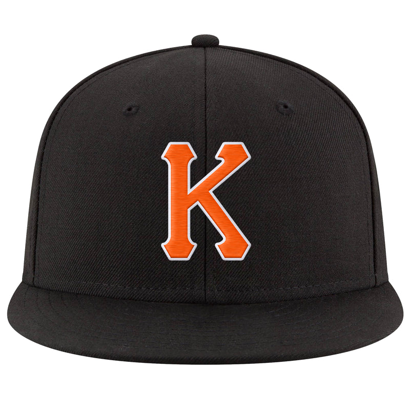 Custom Black Orange-White Stitched Adjustable Snapback Hat