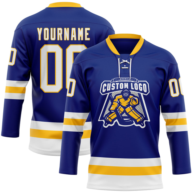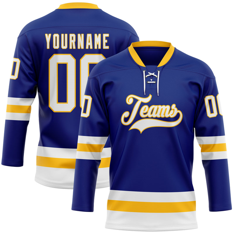 Custom Royal White-Gold Hockey Lace Neck Jersey