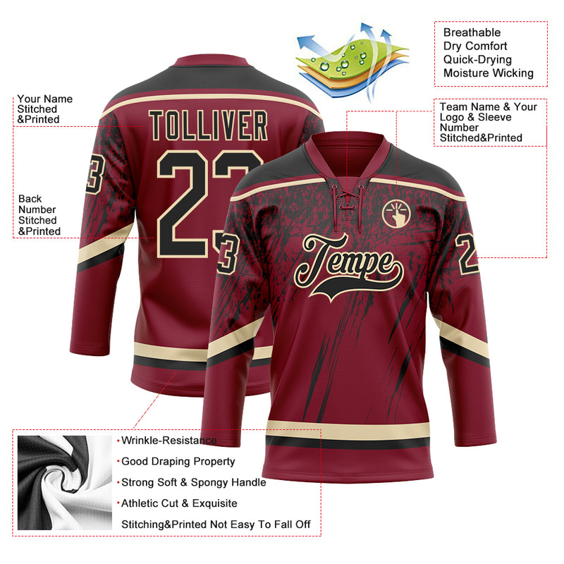 Custom Crimson Black-Cream 3D Splash Hockey Lace Neck Jersey
