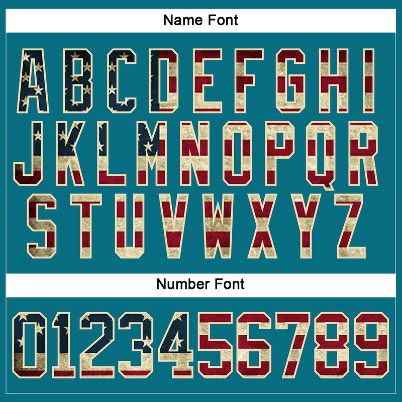 Custom Teal Vintage USA Flag Cream-Black Hockey Lace Neck Jersey