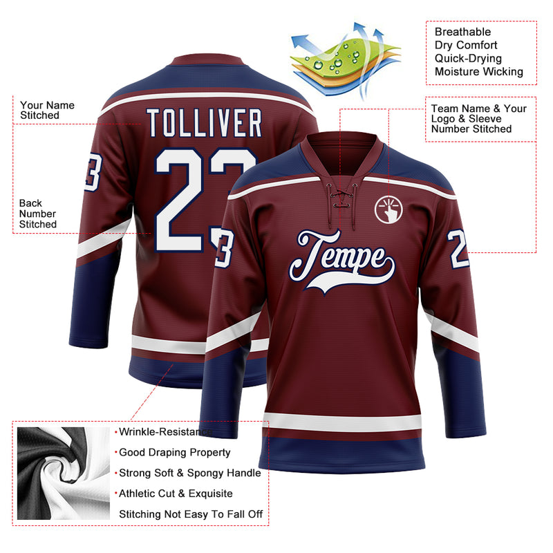 Custom Burgundy White-Navy Hockey Lace Neck Jersey
