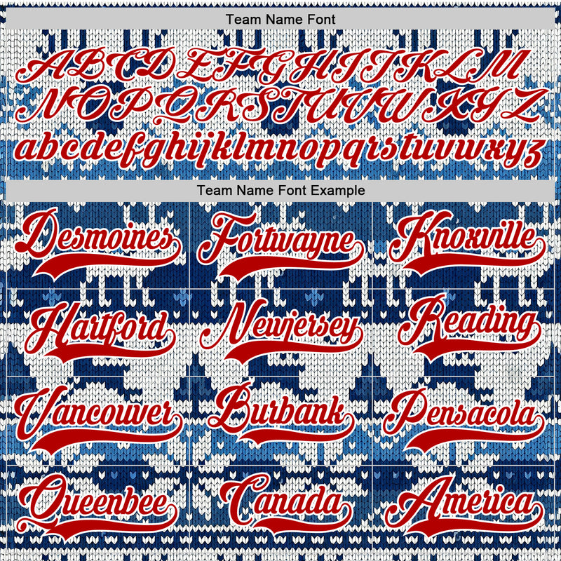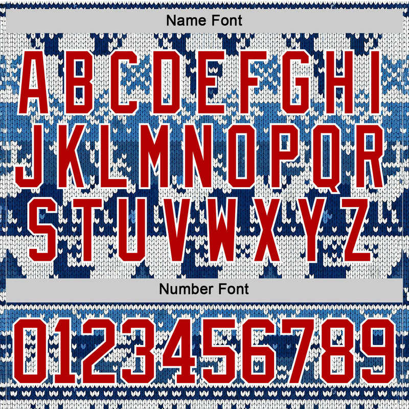 Custom Blue Red-White 3D Christmas Ugly Sweater Hockey Lace Neck Jersey