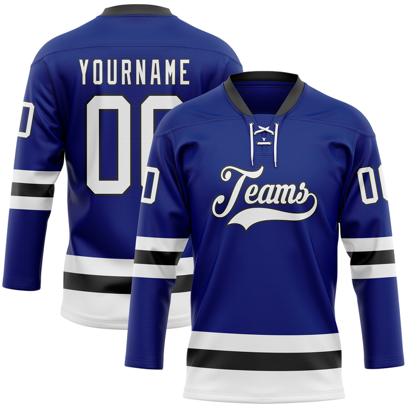 Custom Royal White-Black Hockey Lace Neck Jersey