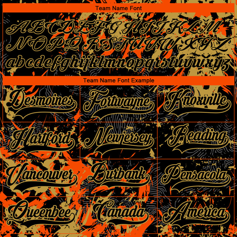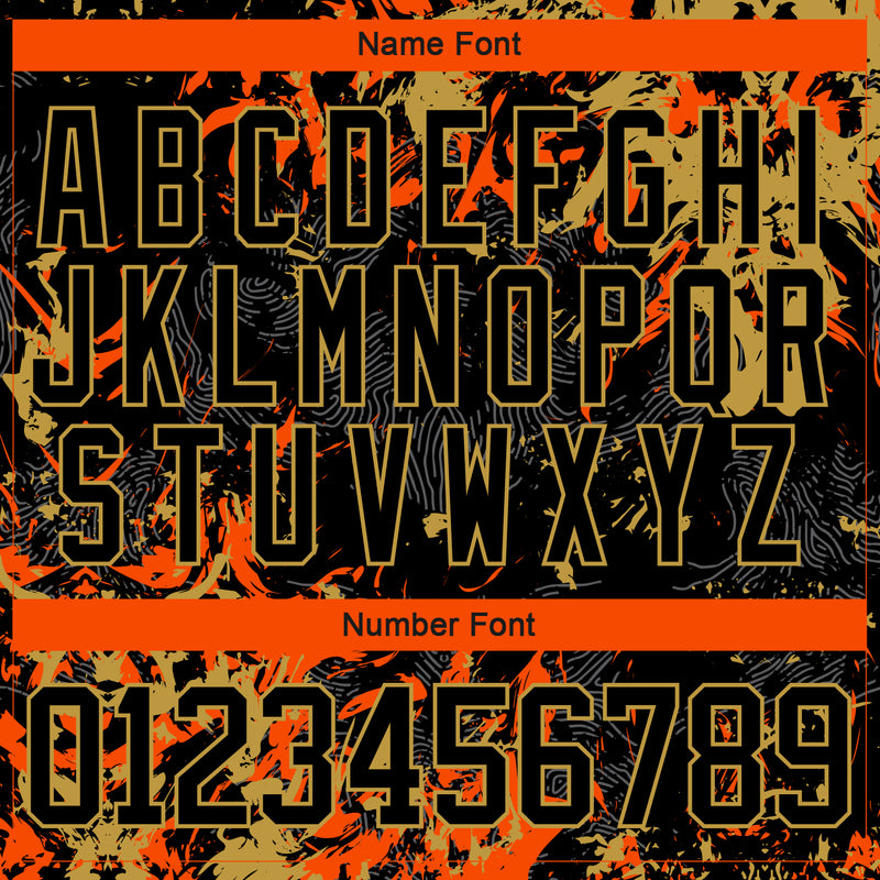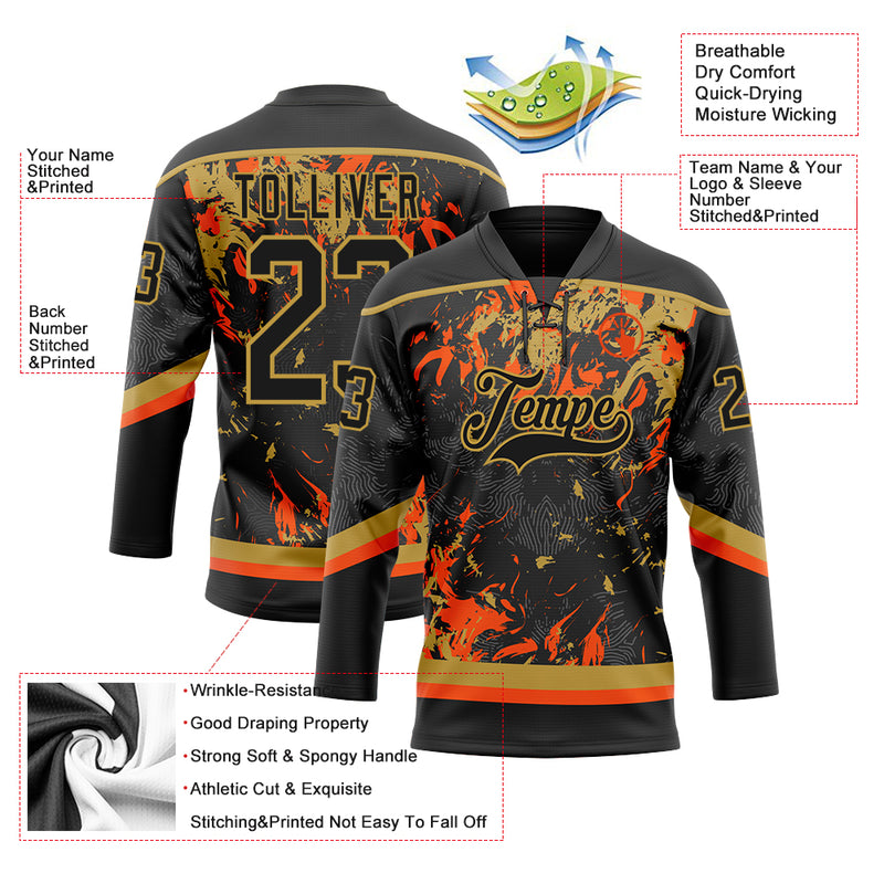 Custom Black Old Gold-Orange 3D Fluid Art Splash Hockey Lace Neck Jersey