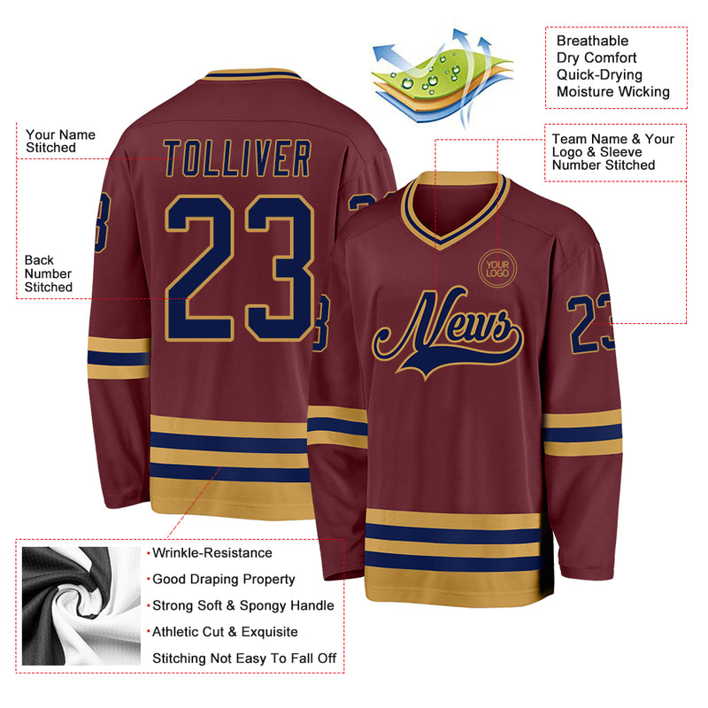 Custom Burgundy Navy-Old Gold Hockey Jersey