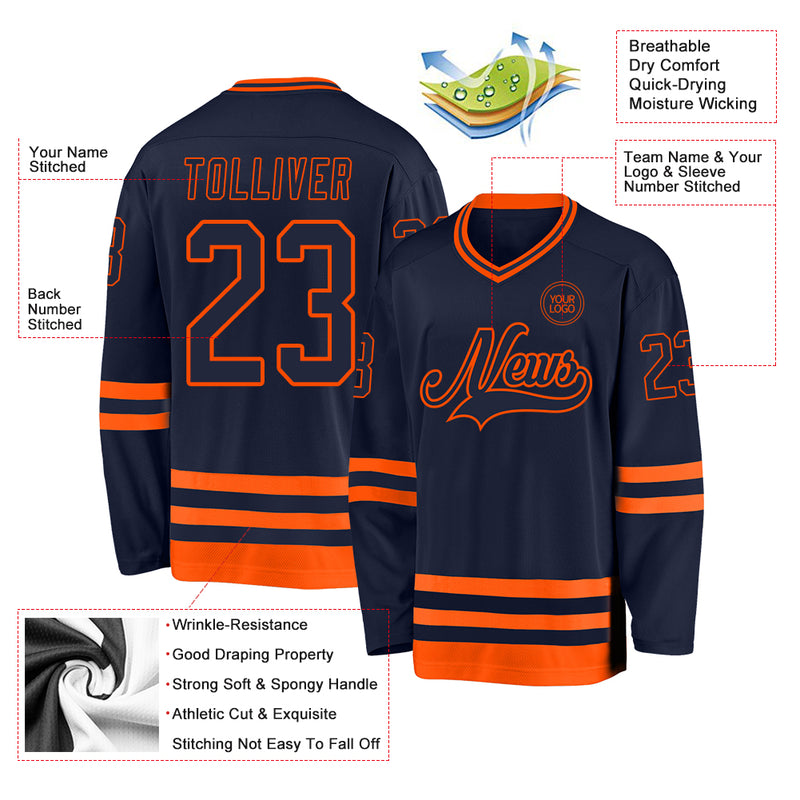 Custom Navy Orange Hockey Jersey
