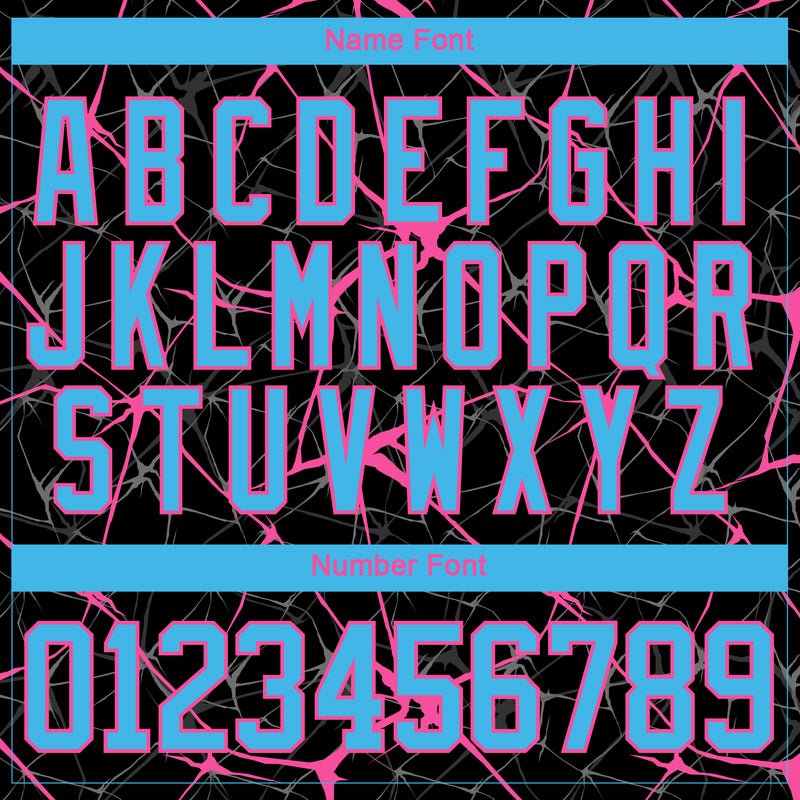Custom Black Sky Blue-Pink 3D Pattern Abstract Network Hockey Lace Neck Jersey