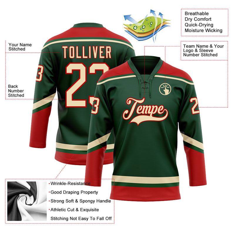 Custom Green City Cream-Red Hockey Lace Neck Jersey