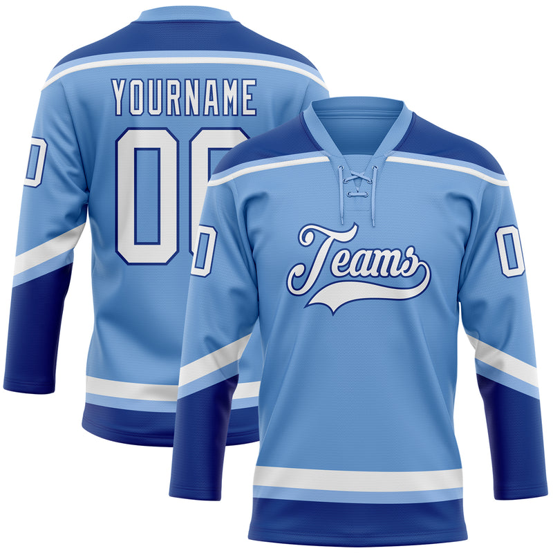 Custom Light Blue White-Royal Hockey Lace Neck Jersey