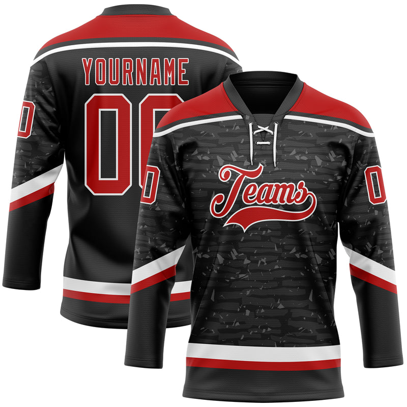 Custom Black Red-White 3D Pattern Fragment Art Hockey Lace Neck Jersey