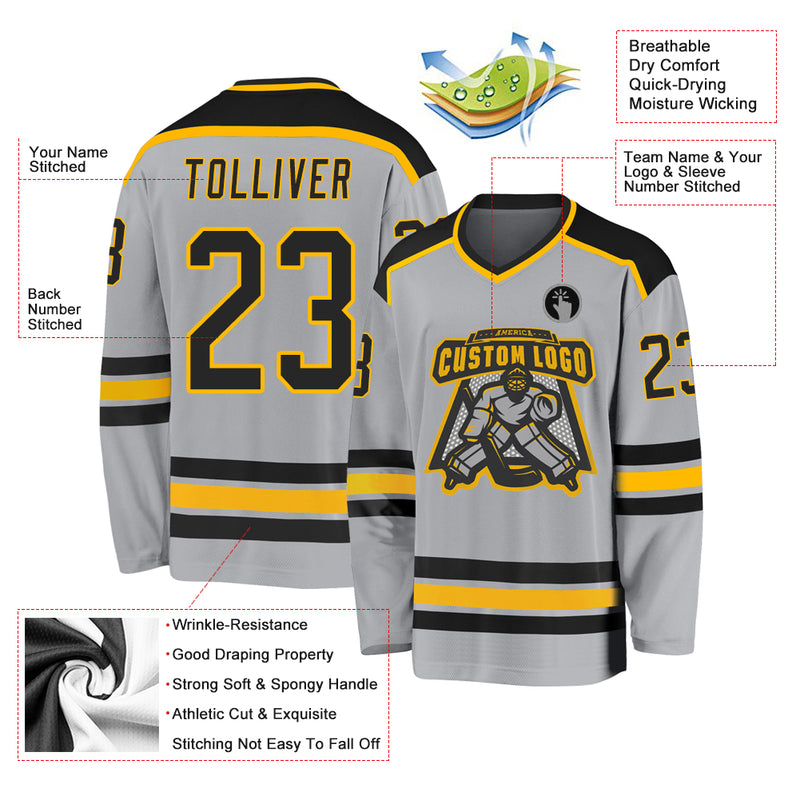 Custom Gray Black-Gold Hockey Jersey