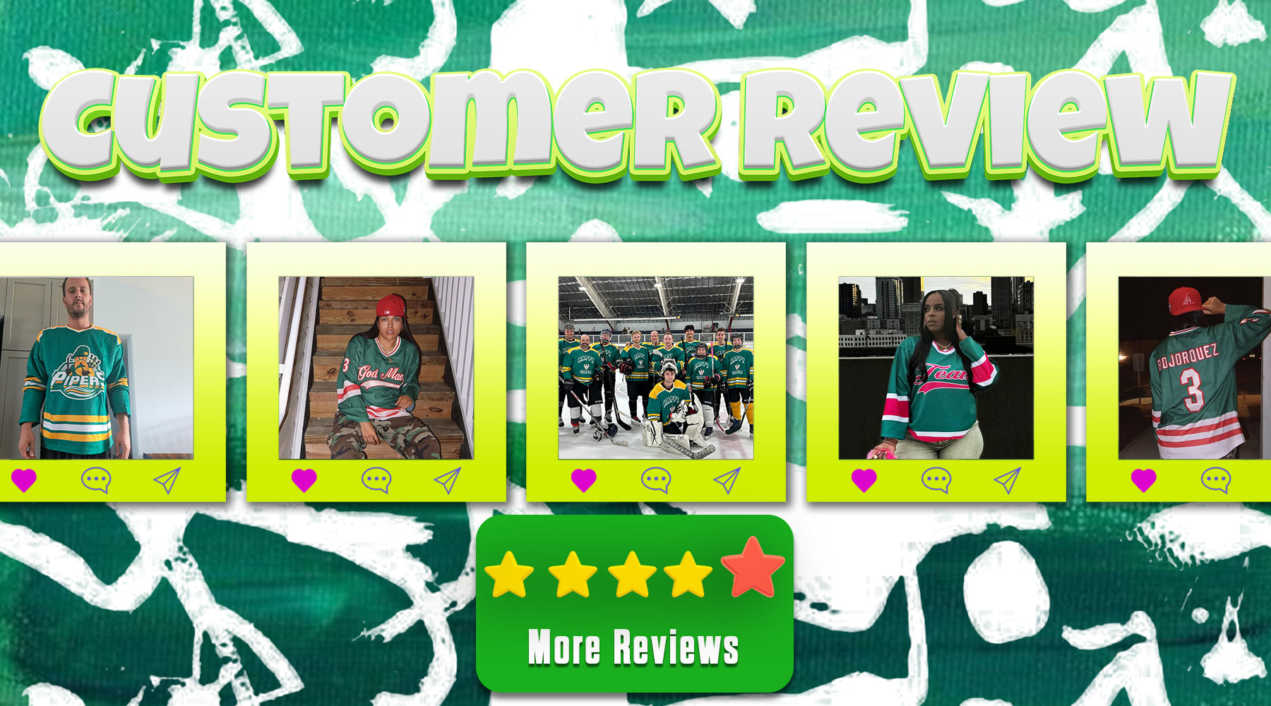 CUSTOM GREEN WHITE HOCKEY JERSEYS & EMBROIDER LOGO/NAME/ NUMBER