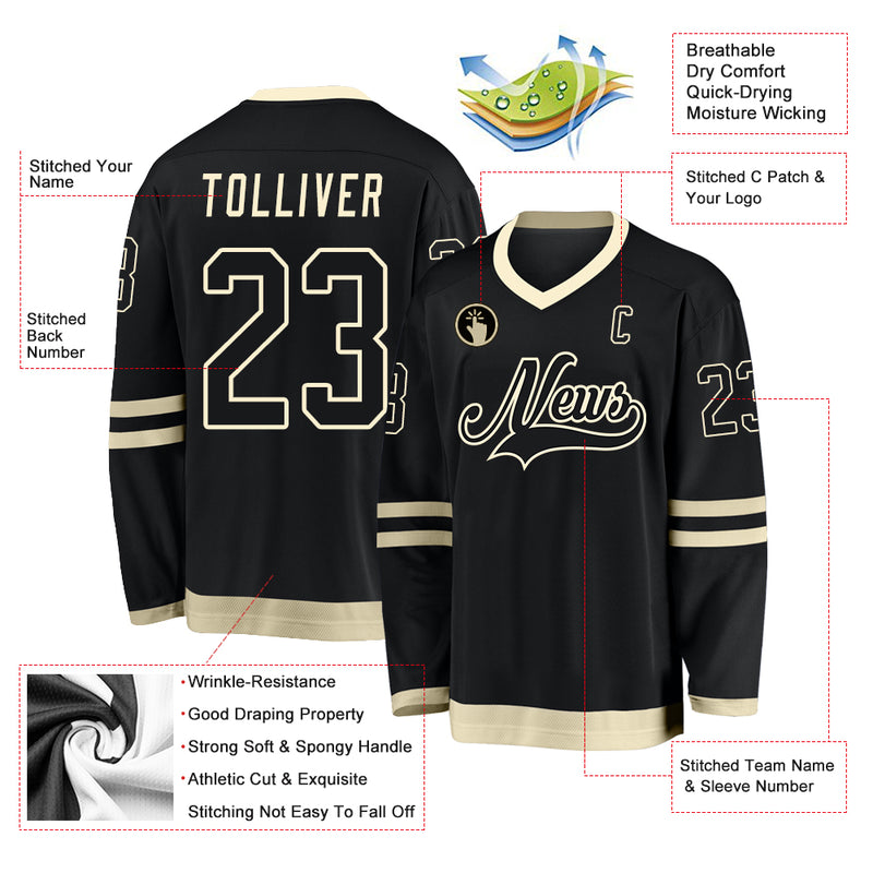 Custom Black Black-Cream Hockey Jersey