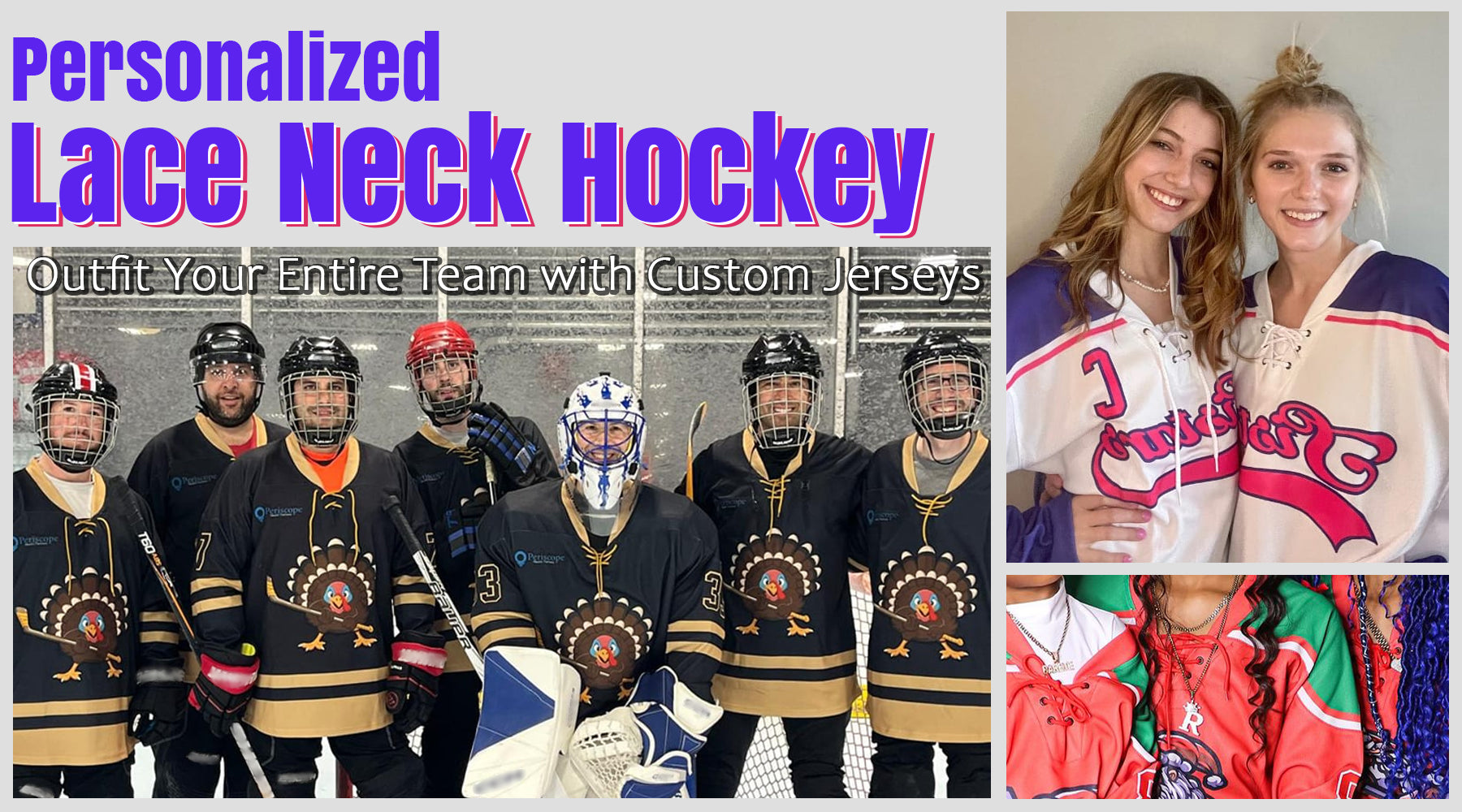 CUSTOM LACE NECK HOCKEY JERSEYS & EMBROIDER LOGO/NAME/ NUMBER