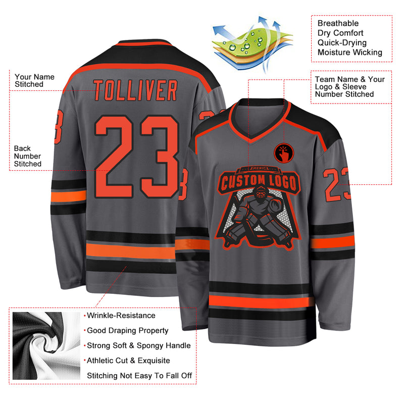 With our personalized hockey jerseys, you have the freedom to choose the colors, fonts, and styles that match your team's identity or personal taste. Every detail is carefully crafted, from the stitching to the logo placement, to deliver a professional and eye-catching look.