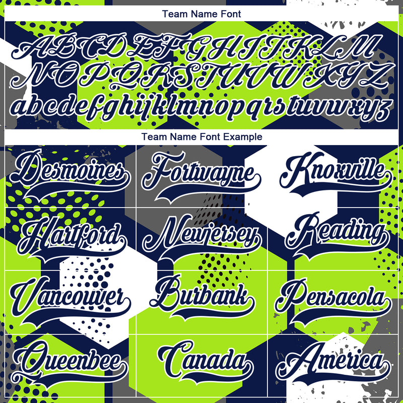 Custom Neon Green Navy-White 3D Pattern Geometric Shape Hockey Lace Neck Jersey