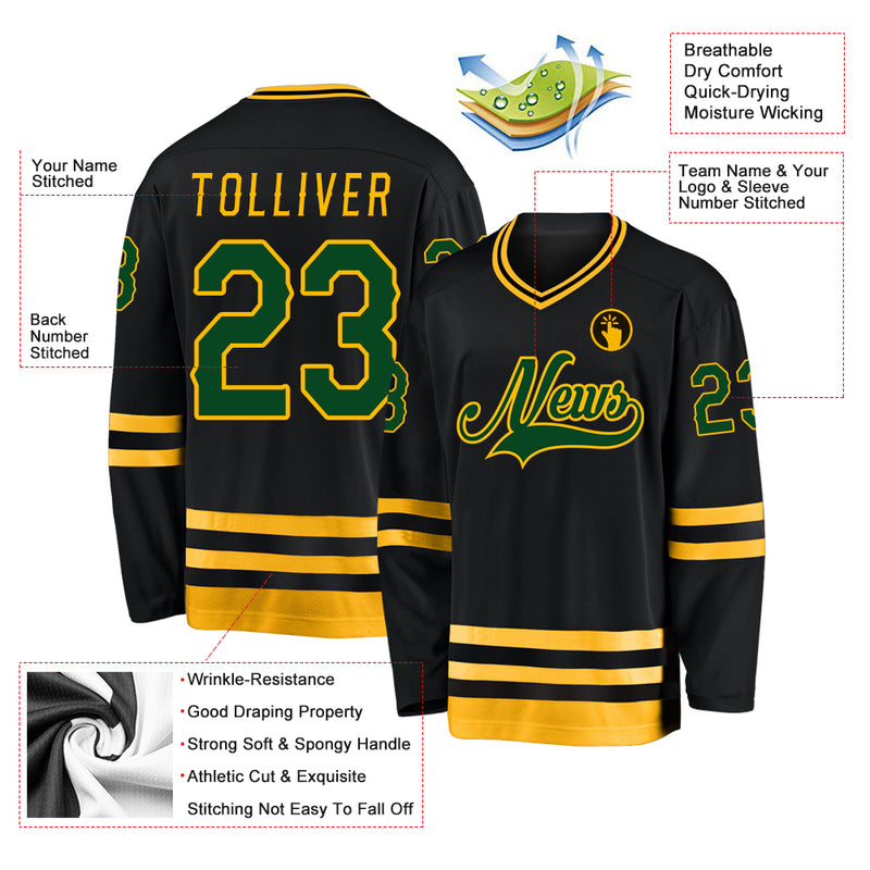 Custom Black Green-Gold Hockey Jersey