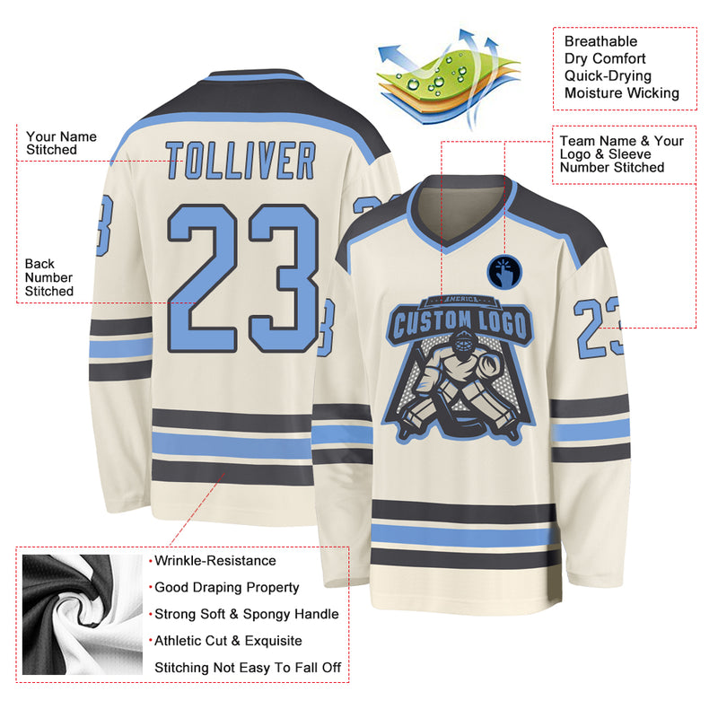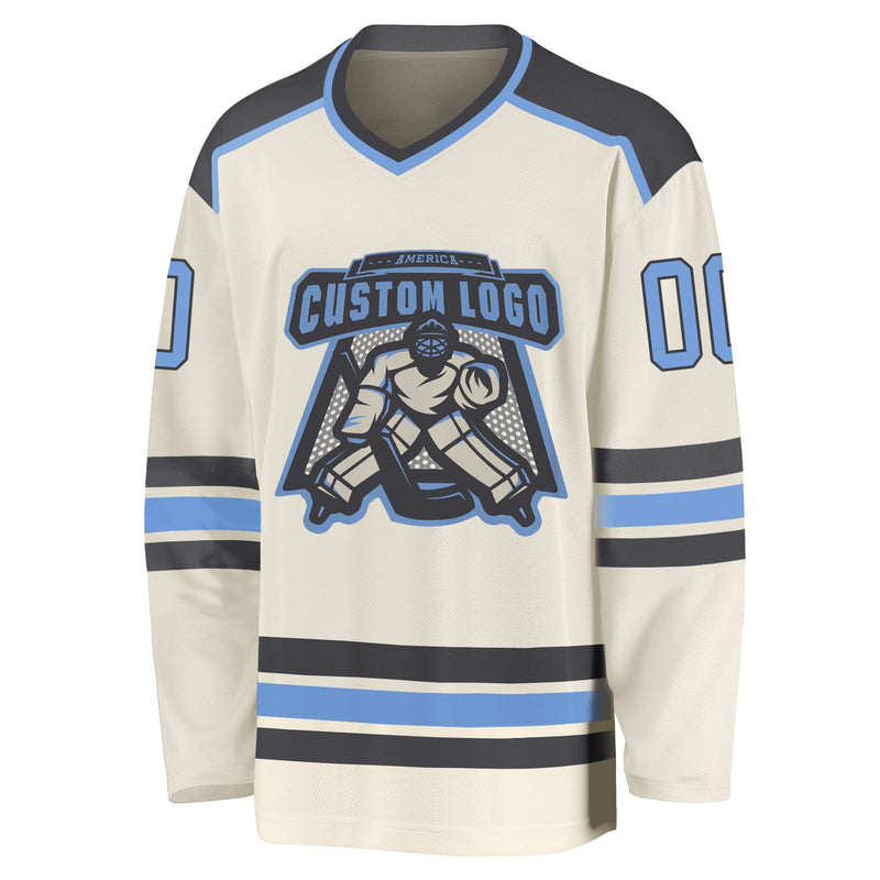 Custom Cream Light Blue-Steel Gray Hockey Jersey