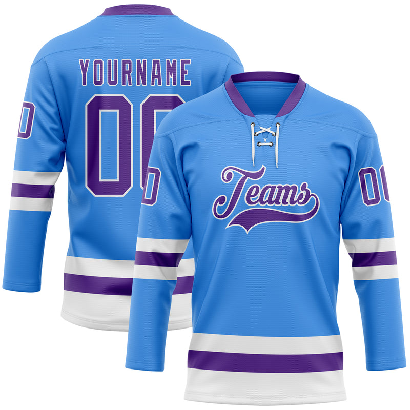 Custom Sky Blue Purple-White Hockey Lace Neck Jersey