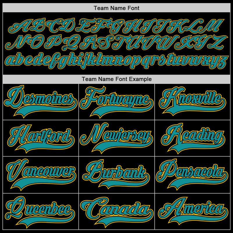 Custom Black Teal-Yellow Hockey Lace Neck Jersey