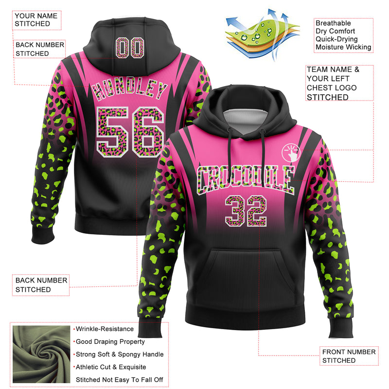 Custom Stitched Pink Black-White Fade Fashion Leopard Print Sports Pullover Sweatshirt Hoodie