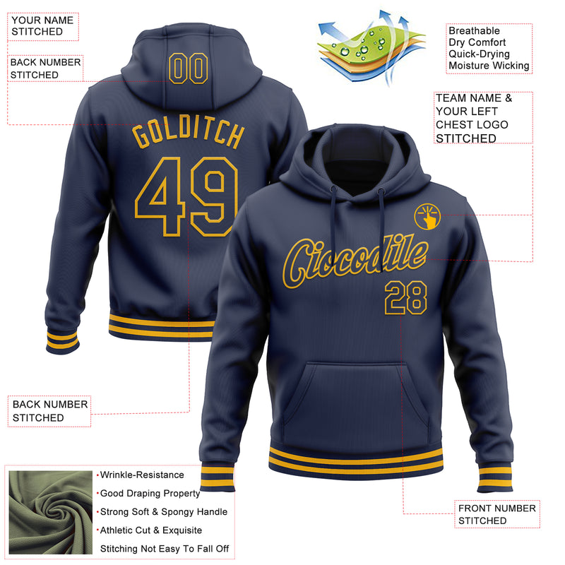Custom Stitched Navy Gold Sports Pullover Sweatshirt Hoodie