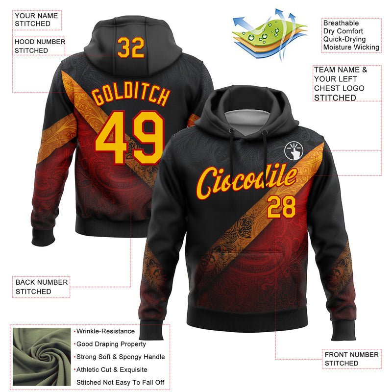 Custom Stitched Black Yellow-Red 3D Pattern Design Germany Inspired Tribal Sportswear Pullover Sweatshirt Hoodie