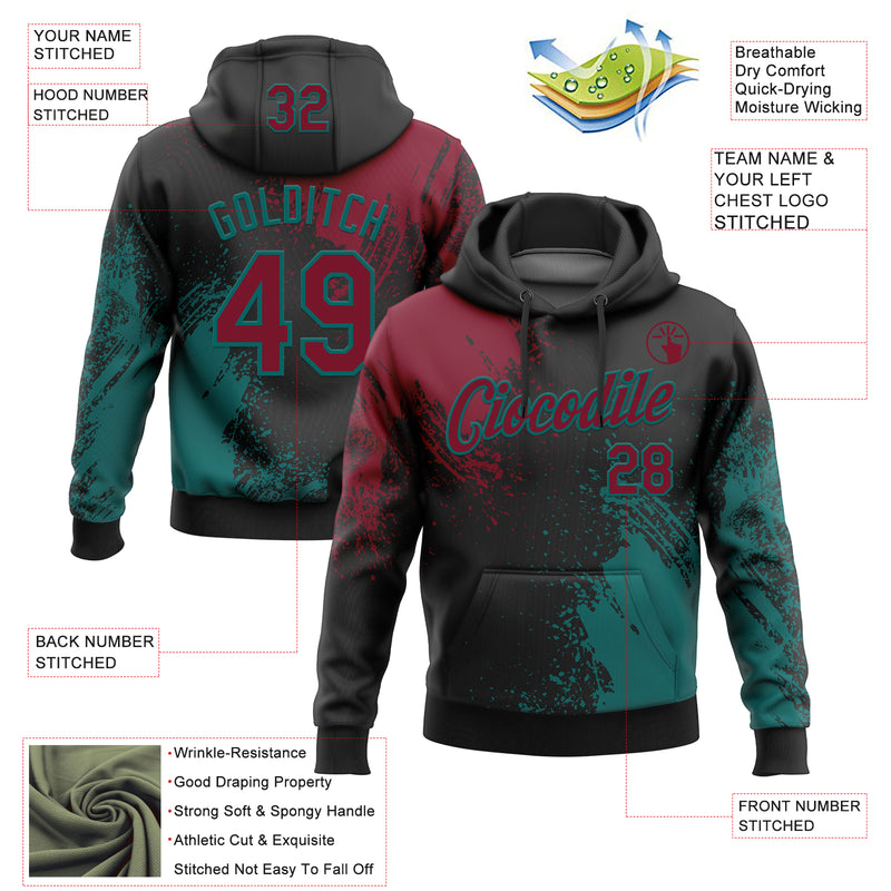 Custom Stitched Black Crimson-Teal 3D Pattern Design Abstract Brush Stroke Sports Pullover Sweatshirt Hoodie